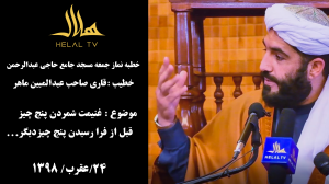 خطبه نماز جمعه مسجد جامع حاجی عبدالرحمن خطیب : قاری صاحب عبدالمبین ماهر موضوع : غنیمت شمردن پنج چیز قبل از فرا رسیدن پنج چیز دیگر… تاریخ : 24 عقرب 1398 کابل ـ افغانستان